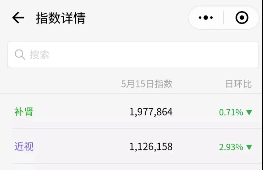 微信指数从侧面印证了国人对男性健康的关注度。补肾每日搜索频次平均达190万次,超过了搜索近视的人数。