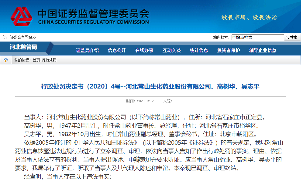 这样的回答显然不能让证监会和广大股民满意,在公告发布一月后,常山药业收到了河北证监局送达的《行政处罚事先告知书》。