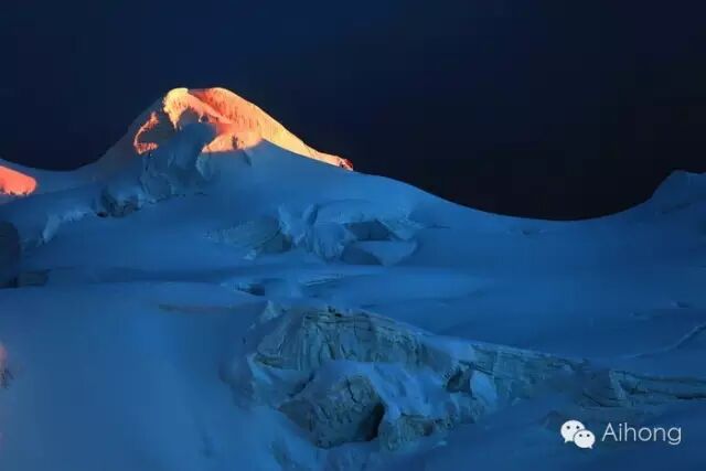 高反的影响下动作异常迟钝,情急之下我只能无奈的求助协作帮我扣上冰抓的保护带,他们忙得完全顾不上我。这时一个卓尔不群的身影出现了——Fred弯下腰帮我系上冰爪,千言万语汇成兄弟二字,印在我的心里。戴上头灯,我们匆忙上路。这时候天色黑漆漆的,高原上大脑反应迟钝,眼睛就一直没离开过地面,不用看也看不清远方,只要看地上的脚印就可以了——长路漫漫一起上下而求索,反正一时半会也走不完。。。