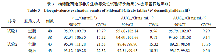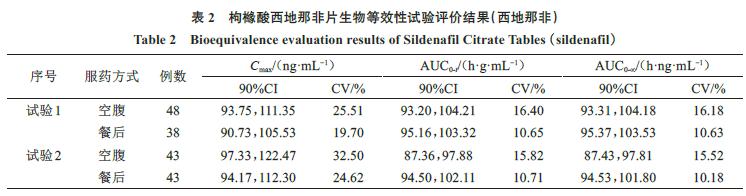 3枸橼酸西地那非片在中国的生物等效性试验评价结果分析