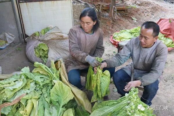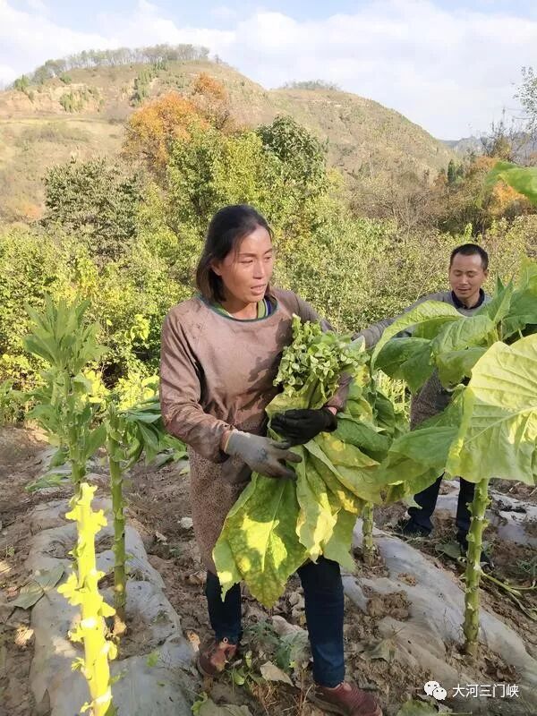 随后,二人又来到自家的烟田,开始摘烟叶。