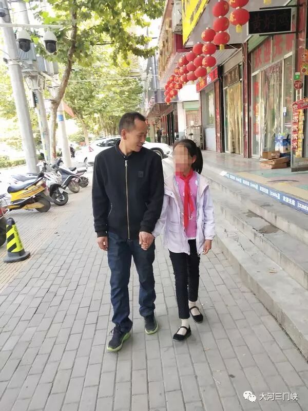 郭志岗把女儿从学校接出来后,父女二人手拉着手,有说有笑。