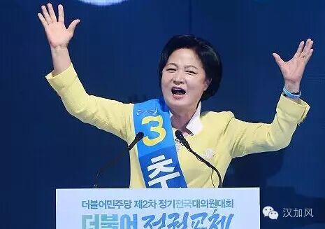 秋美爱被认为是现在韩国国内倒朴势力的急先锋和总指挥。在韩国朝小野大的国会局势下,共同民主党新任党首秋美爱身为女性政治人,被指具有敢于打破政治局面的特点。秋美爱正在一步一步利用国民的情绪构建对总统府青瓦台的包围之势。
