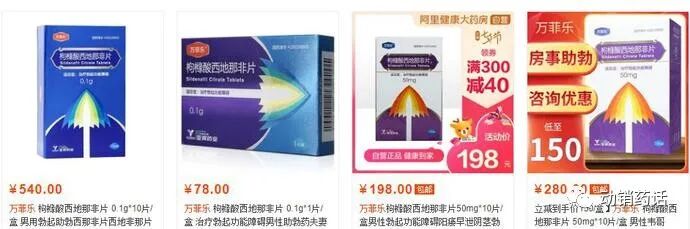 江苏亚邦爱普森药业虽然未上市,在网上也能看到该药企销售的伟哥产品--万菲乐。万菲乐的销售价格在198元一盒至540元一盒,销售均价在19.8元/片至54元/片左右,也低于金戈销售均价。