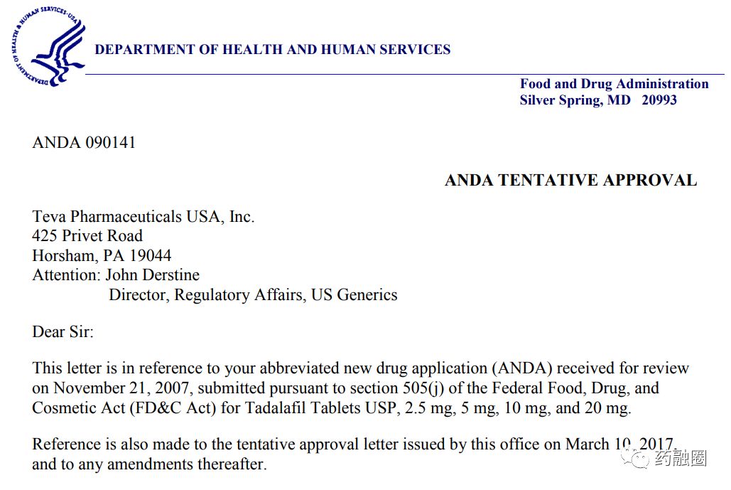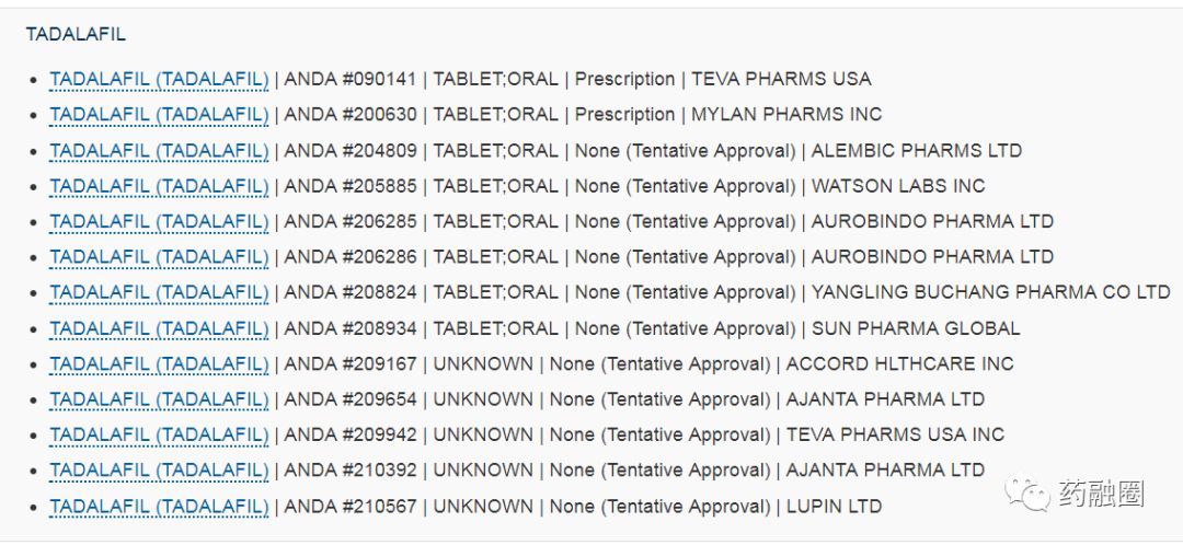 5.Teva的他达拉非仿制药已在2017年获得了FDA的暂时性批准(TA),由于专利问题产没有上市。根据礼来与Teva达成的协议将他达拉非的专利期限定为了2018年9月27日。