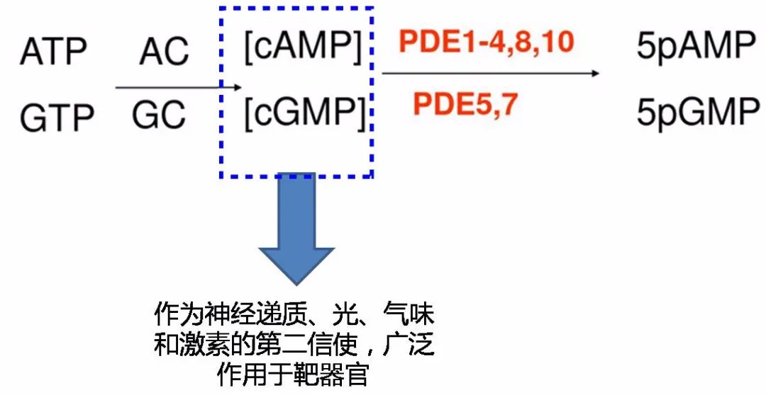 cAMP和cGMP对于细胞活动起着重要的调节作用,而其浓度的调节主要由腺苷酸环化酶的合成和磷酸二酯酶(PDEs)水解作用之间的平衡决定。