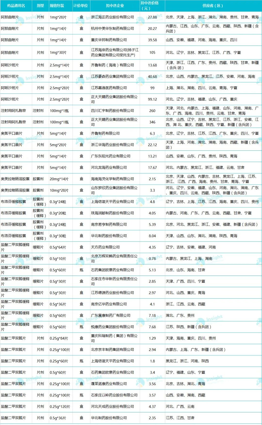 部分拟中选药物名单,点击可查看大图,图源:Insight 数据库