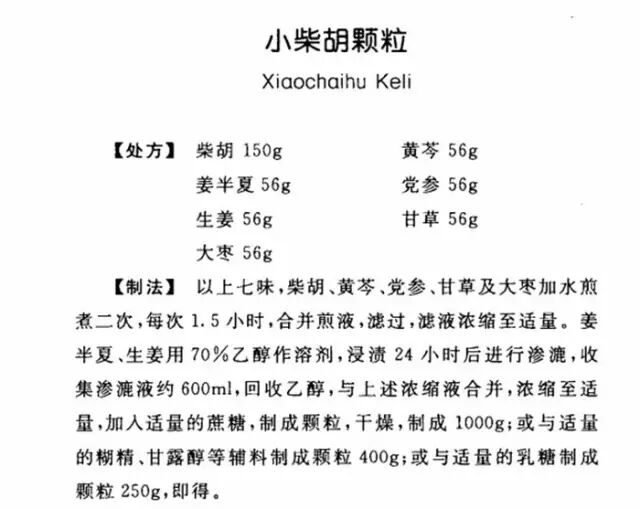 小柴胡颗粒出自汉代医圣张仲景的《伤寒杂病论》中的小柴胡汤:伤寒中风症,往来寒热,胸胁苦满,不欲饮食,心烦喜呕,或胸中烦而不呕,或渴,或腹中痛,或胁下痞硬,或心下悸、小便不利,或不渴、身有微热,或咳者,小柴胡汤主之。