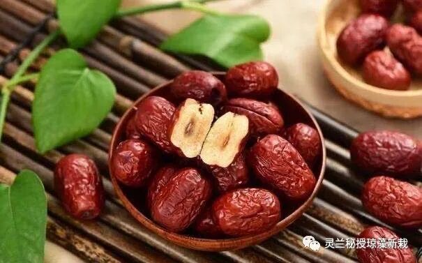 【大枣】大枣性温,可用于调理脾胃湿寒、完谷不化,还能缓解脾气虚引起的乏力、食欲低下、便溏等症。大枣中含有丰富的铁元素,有助于促进骨髓造血,改善缺铁性贫血症状,且大枣中含有的黄酮类化合物还有镇静的功效,可改善神经衰弱、失眠等症状。现代临床医学研究发现,大枣还能增加白细胞内环磷酸腺苷含量,能增强心肌细胞抗损伤、抗缺氧能力。