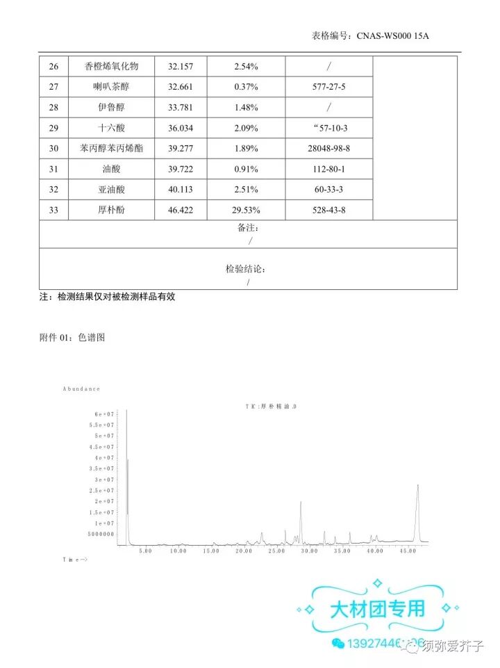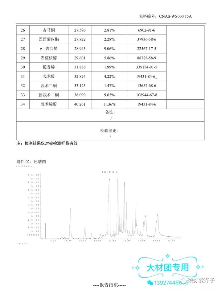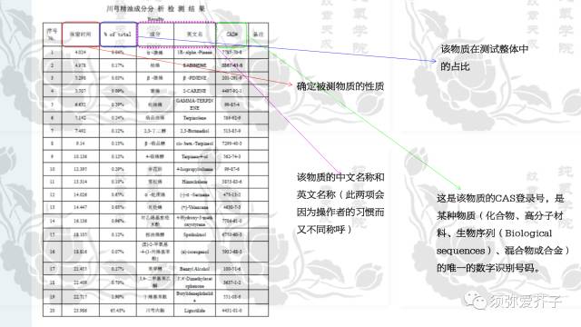 那,植物的科属力量,可以从书上查咨询,可以实地去触摸,去观察植物的生长。另外的化学分子,我们有GC-MS报告,气相色谱质谱图给我们做分析。