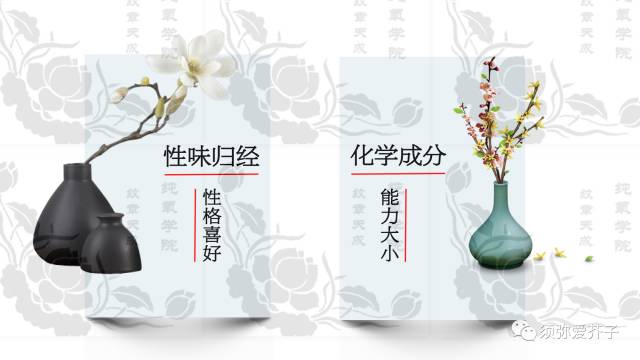我拿到一只中药精油的时候,会返回去看一看它的原生植物的这味中药材,在中医上是怎么把它给归类的,怎么总结它的。再去看一看,它是属于哪一个性质。凉的寒的温的还是热的。看看它在五味当中属于属于辛甘酸苦咸的哪一味。然后再看看它作用的经络和脏腑的方向是哪里。我觉得了解这些,就像了解这支中药精油的性格喜好一样,我就知道它喜欢到哪儿去、它这个人是开朗的还是严肃的、给我的感觉是怎样的,所以,我觉得性味归经,其实就是这个精油,它自己的性格和喜好。就跟我们人是一样的。
