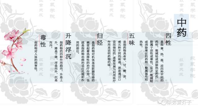 对于中药来说可能我们常常嘴边挂着:上火了,你要去喝点凉茶,或者说我们冬天到了,我们要进补。这段时间太累了,要喝一点补气补血的东西。其实我们所讲的这些凉啊,这些补气的。这些进补的,都是中药药效之一,那对于指导中药来说(应该)怎么使用呢?首先。我们的老祖宗们就中药的本身的特质呢,分别在几个方面来归类。