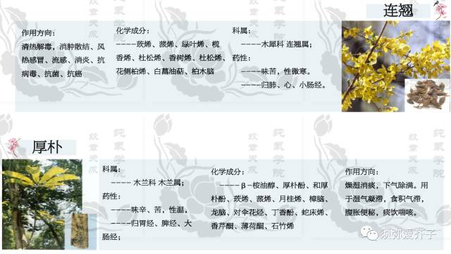 还有月桂烯、蒎烯、樟脑、龙脑,对伞花烃,丁香酚,所以厚朴有的这两个功效,第一个都是杀菌很厉害,对于腹部的炎症有很好的疗效,还有祛湿,特别是腹部脏器的湿气,所以它的功效就是燥湿消痰,下气除满,用于湿气凝滞,食积气滞,腹胀便秘,痰饮喘咳这些方面用厚朴,是很对应的一味药。