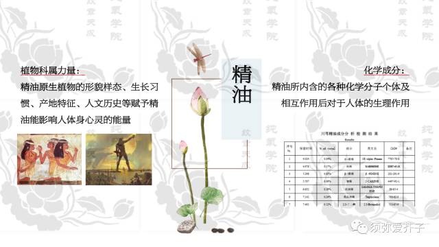 关于精油,我相信我们的群里面的小伙伴都是有一些基础的,也看了很多的书,不管是中外的书籍,老师们都会建议大家如果我们要熟悉一支精油熟悉它的用法,我们需要从两个方面去了解,一是植物科属,另外一个就是植物精油中的成分。一个是宏观的,一个是微观的,从这两方面去了解精油。中药精油,慢慢盛行开来也就是这几年的时间。我在接触到的一些信息里面。好像也没有对使用有很系统的说明。