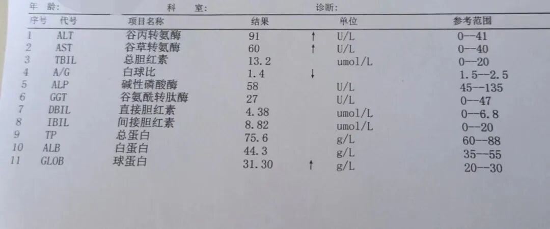 谷丙 、谷草超出正常值2倍以上,基本判断有肝损伤。