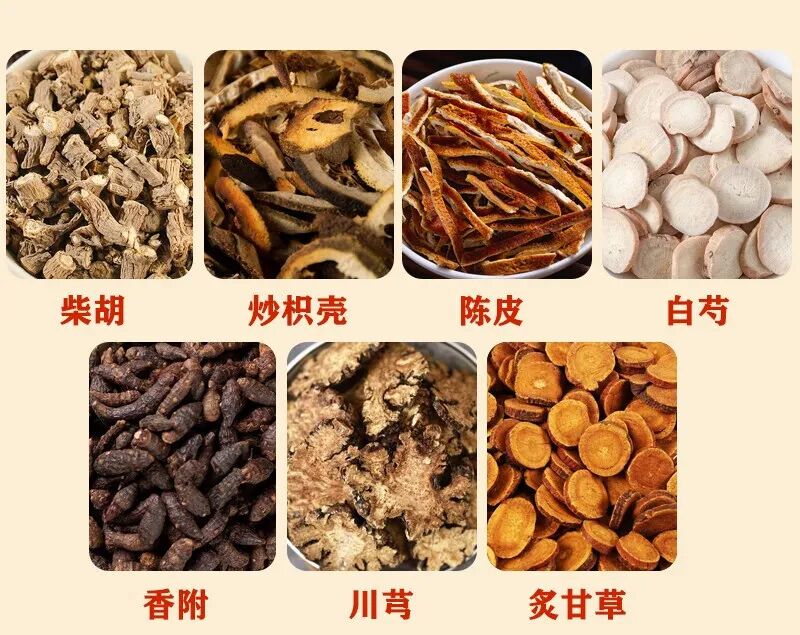 柴胡疏肝散由醋陈皮、柴胡、炒枳壳、川芎、香附、芍药、炙甘草组成。其中柴胡苦辛而入肝胆,擅长条达肝气而疏郁结;香附味辛入肝,长于疏肝行气止痛;川芎味辛气温,入肝胆经,能行气活血、开郁止痛;陈皮理气行滞而和胃;枳壳行气止痛以疏理肝脾;芍药养血柔肝,缓急止痛;甘草调和药性。诸药合用,达到疏肝解郁,行气止痛的功效,可有效治疗肝气郁滞之证,缓解胁肋疼痛、情志抑郁等症状。