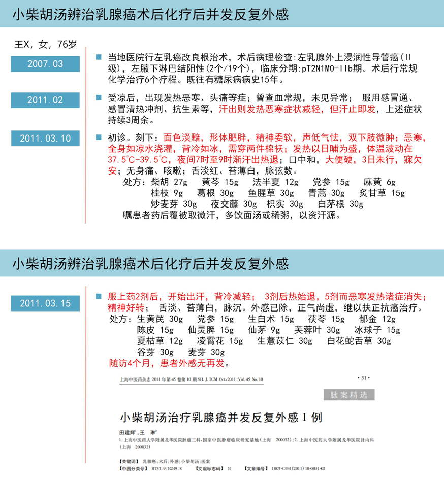田建辉,王琳.小柴胡汤治疗乳腺癌并发反复外感1例[J].上海中医药杂志,2011,45(10):31-32.DOI:10.16305/j.1007-1334.2011.10.016