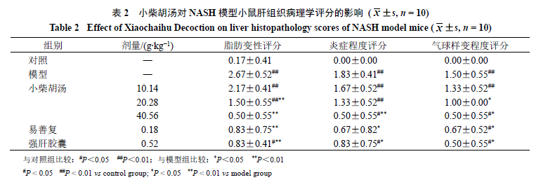 3.2小柴胡汤对NASH模型小鼠肝组织病理变化的影响