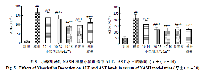 3.5小柴胡汤对NASH模型小鼠血清中ALT、AST水平的影响