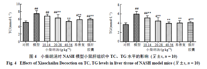 3.4小柴胡汤对NASH模型小鼠肝组织中TC、TG水平的影响