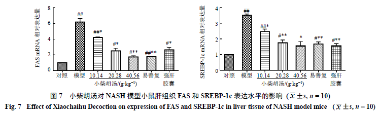 3.7小柴胡汤对NASH模型小鼠肝组织FAS和SREBP-1c表达水平的影响