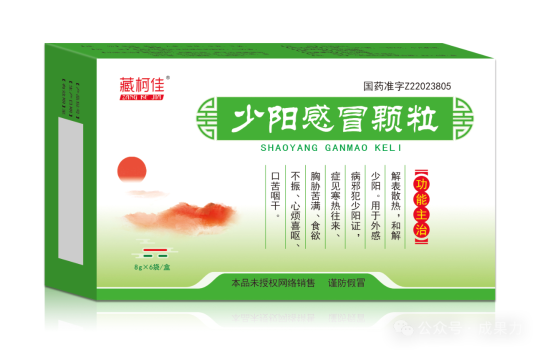 少阳感冒颗粒由柴胡、黄芩、人参、甘草、半夏、干姜、大枣、青蒿组成,采用柴胡散郁升发,助少阳之气达于外;黄芩苦寒清火,使少阳之火清于里;用半夏开结气,降逆止呕;生姜大枣调营卫,甘草调诸药,人参扶正气;外加青蒿加强清火、攻邪作用,全方为枢转少阳,和解少阳,因此少阳感冒颗粒有和解之祖方、和解第一方的称誉!