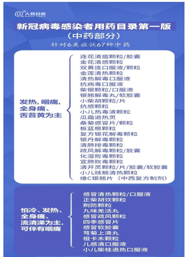 △国家发布的《新冠病毒感染者用药目录》第一版的中药部分内容