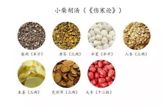 小柴胡汤组成:柴胡半斤、黄芩三两、半夏半升、人参三两、甘草(炙)三两、生姜三两、大枣十二枚。七味中药相伍成方,和解少阳为功、升散降泄俱应、和胃降逆安中、驱邪扶正以治。