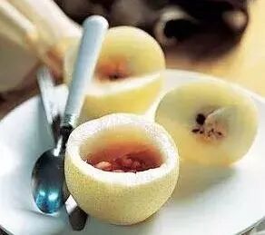 ①贝母沙参蒸雪梨:雪梨1个,去皮去核,填入适量贝母、沙参、薄荷及冰糖,放在碗内加水蒸熟,早晚分食,连吃数日。