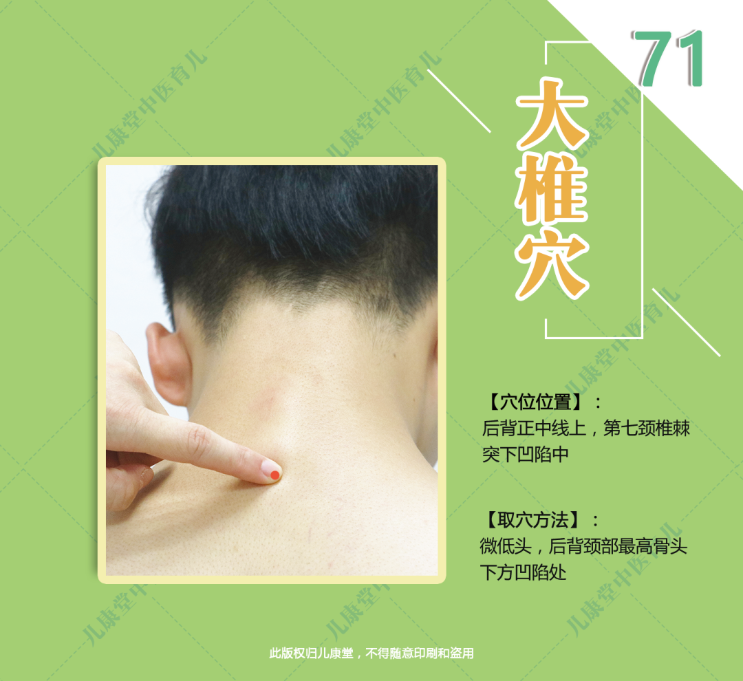 如果孩子流清鼻涕、打喷嚏、咳嗽,快准备好热水袋,热敷大椎穴,能起到温阳散寒的作用。