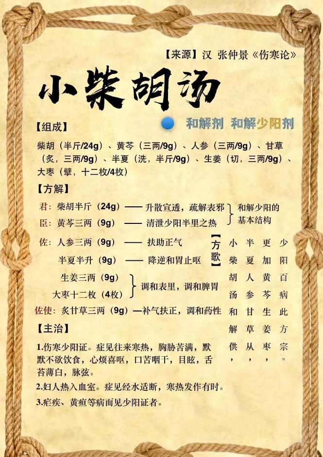 小柴胡汤这个汤方已经有很多中成药的剂型了——小柴胡颗粒,是一个家中常备的中成药。