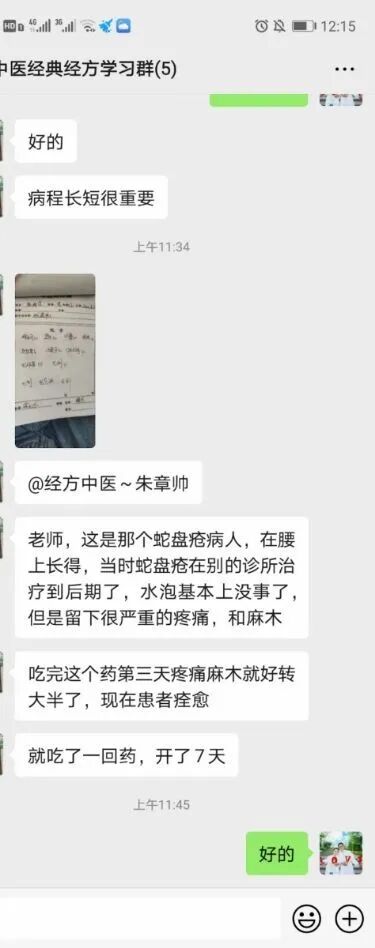近日师姐告知,患者服完3剂,病情缓解大半,现已完全康复。