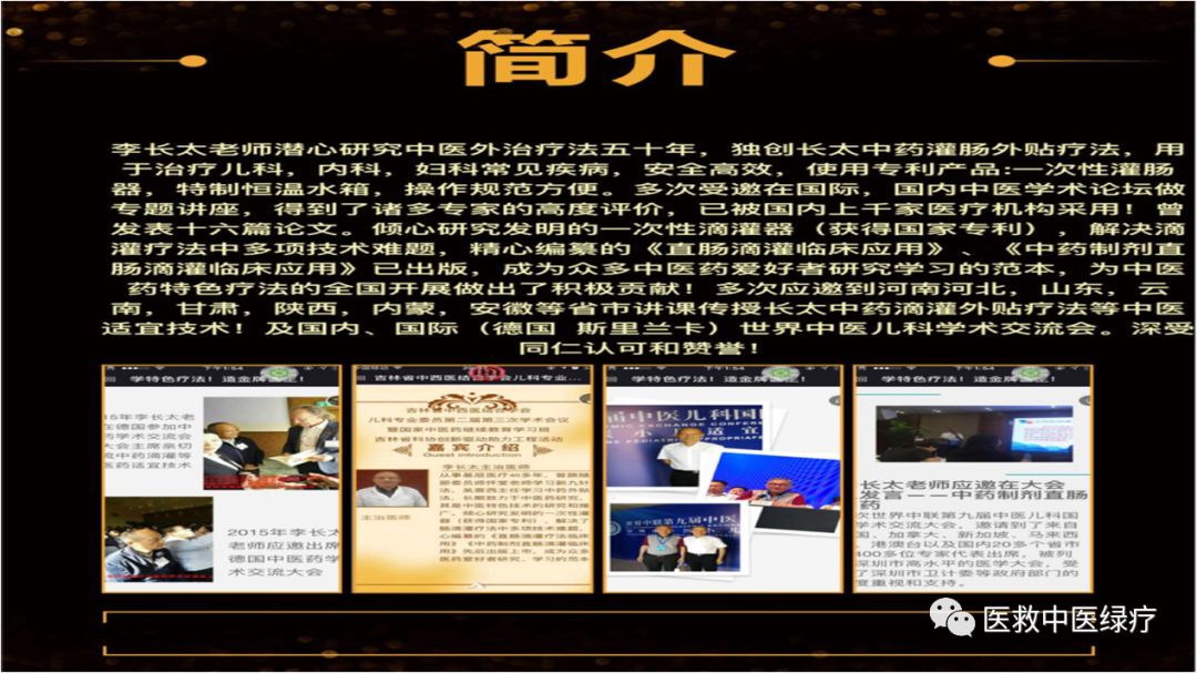 长太中药滴灌特色疗法培训班常年招生!培训内容国家政策支持!发展弘扬长太中医滴灌绿色疗法技术!长太门诊培训的优势:我们一直走在中医适宜技术行列最前端!我们有自己的专利产品一次性滴灌器,创造自己的长太品牌!我们的培训老师多次应邀在国际,国内会议论坛讲解长太中药滴灌外贴疗法!省市级多家医院采用长太中药滴灌疗法!!李长太老师编写的《直肠滴灌临床应用》以及《中药制剂滴灌临床应用》两本著作发行畅销,成为众多中医爱好者研究学习的范本!!有自己的专业网站!培训8年以来各地的学员分布万名以上!有丰富的教学和指导经验!专业的培训师资力量和后续服务团队对学员做技术指导!自己的个体门诊患者量每天排队给学员提供操作实践的机会,学员熟练操作完善掌握!!建立的专属学员QQ 群,微信群后期做在线指导!所有的技术配方公开不保留,传授基层医生开展受益降低医疗风险的实用技术!!各地已经开始禁止🚫输液!医疗风险存在医护担惊受怕!欢迎各地想要转型的医生加入我们的大家庭!合作共赢共创辉煌!,转型升级必然趋势——联系电话️ 13733846733吴梦瑶