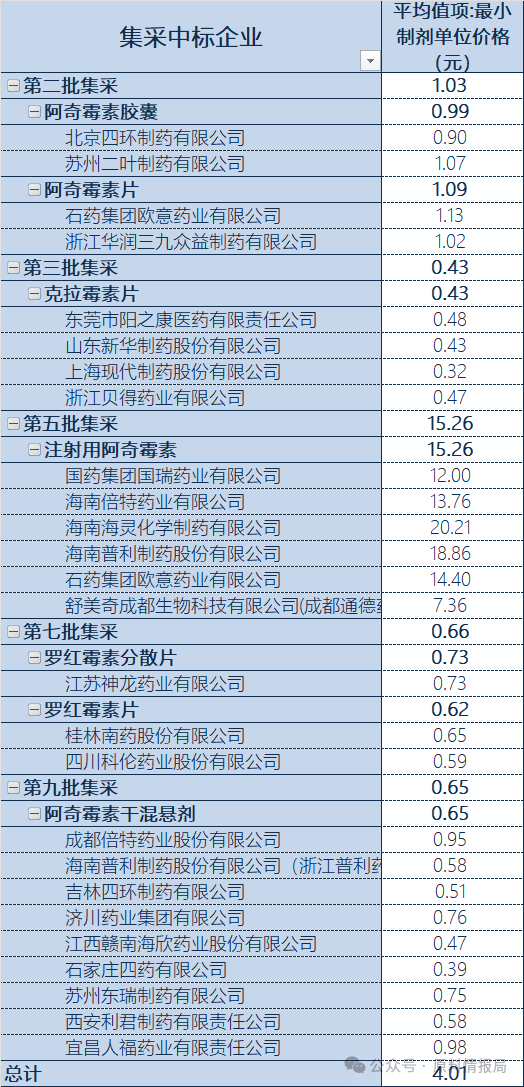 阿奇霉素口服制剂在第二批集采,克拉霉素片在第三批,注射用阿奇霉素第五批集采的价格很不错,第九批集采的阿奇霉素干混悬剂算是打破头了。