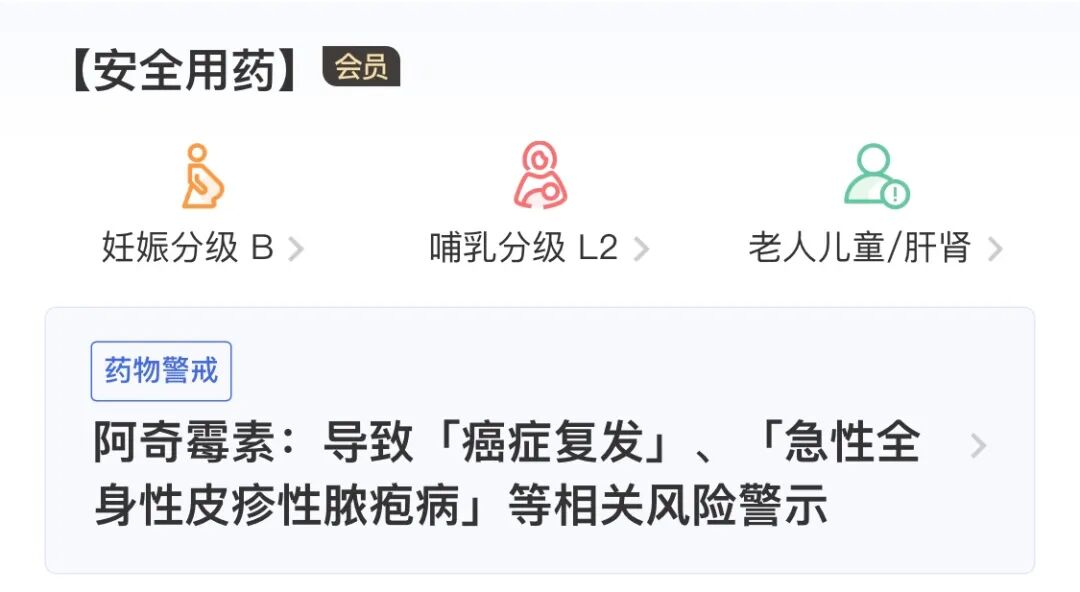 妊娠、哺乳分级等会员专属详细数据,可在用药助手 APP 内的说明书上查看详情。