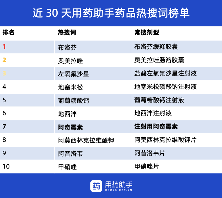 前几周,我们对热搜 Top6 的「布洛芬」、「奥美拉唑」、「左氧氟沙星」、「地塞米松」、「葡萄糖酸钙」、「地西泮」进行了解读: