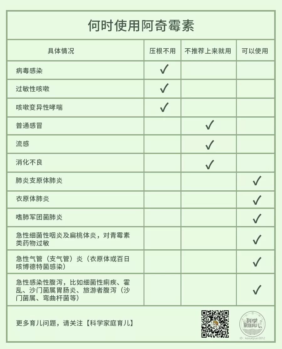 为了方便大家快速get到底什么时候能用阿奇霉素,超贴心的科大大做了这张爱心表,记不住的快长按保存吧~