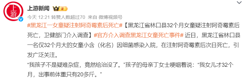 32个月女童疑注射阿奇霉素后死亡!洗肺?输液?支原体再可怕,也没滥用药可怕!