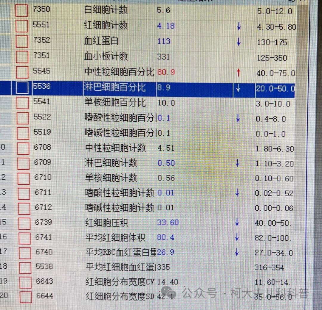 1.对于儿童甲型或乙型流感感染儿童的 淋巴细胞计数明显低于甲型和乙型流感病毒检测呈阴性的流感样症状儿童,所以发热早期的甲型流感与乙型流感感染儿童的淋巴细胞计数通常下降,这点信息要值得注意,而不能简单看中性粒百分比。