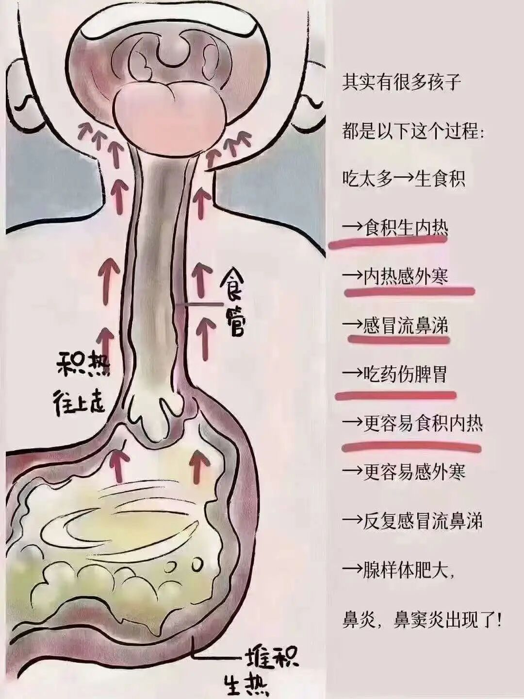 其实成人的肠道有7.4米长,小孩的肠道也有几米,有些食物积在拐弯的皱褶里,正常大便推动不到的部位,反复刺激肠道就会发热,腑气不通肺气不降就会咳喘,所以一味解表不达根本,热缠绵难退,通下就彻底退热了。