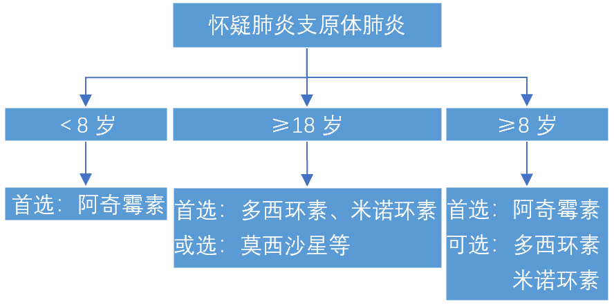 当怀疑支原体肺炎时,需根据患者年龄和耐药情况选择抗菌药物: