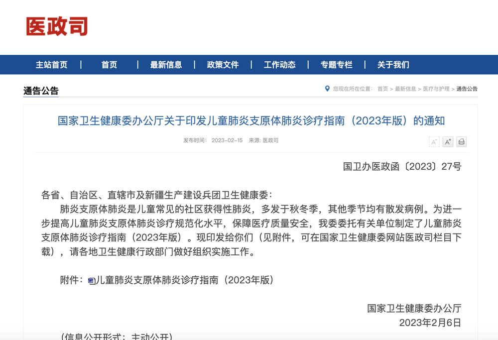 不过,2023年2月,我们国家发布了《儿童肺炎支原体肺炎诊疗指南(2023年版)》。