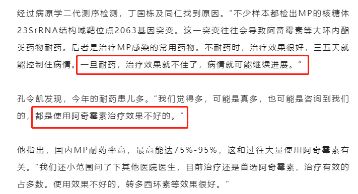 受访医生更是指出,今年对阿奇霉素耐药的患儿尤其多,一旦耐药,治疗效果不佳,孩子的病情有可能继续进展,治疗便随之拉长。