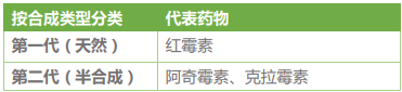 大环内酯类抗生素还可分为天然类、半合成类,即第一代和第二代2。