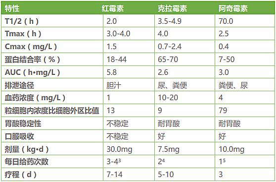 红霉素、克拉霉素及阿奇霉素各自的药物特性