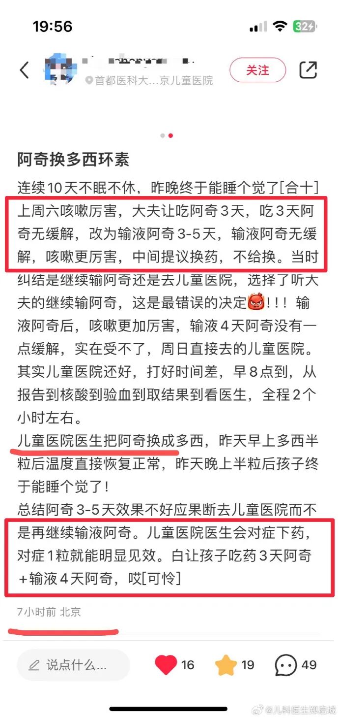 宝妈评论:虽然听起来很有道理,可是感冒咳嗽吃抗菌素是专业儿童医院的普通门诊和专家门诊常规操作啊,咳嗽阿奇霉素一吃就好,周围爸妈也一致认同,阿奇霉素yyds。童爸回复:这就是我这个号存在的意义。