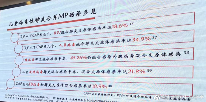 @儿科医生小平平:支原体感染的诊疗误区 今天准备多说一些干货,起因是在一次会议中,看到了图片中这样的结果(注意,为了避免不必要的纠纷,我截图去掉了一些内容)。