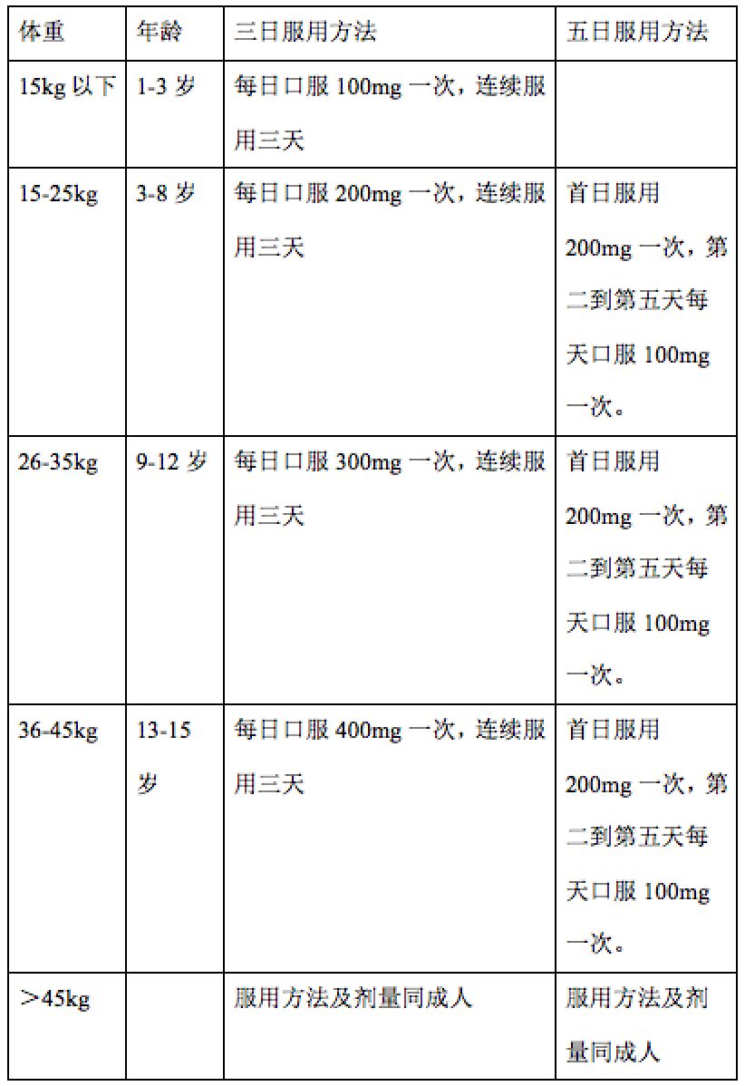 对于儿童常见的链球菌感染咽炎,连续只吃3天的用法用量是:每天服药1次,每次的剂量是10mg/kg,总共服药3天;如果采用中间不停药的用法用量,则需每天服药1次,第1天的剂量是10mg/kg,第2至第5天的剂量减半,是5mg/kg,总共服药5天。