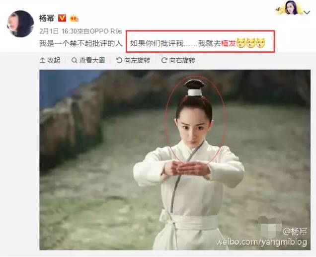 首先是杨幂所说的植发:网友对于她发际线的吐槽她本人也看到了,高情商回复一波。