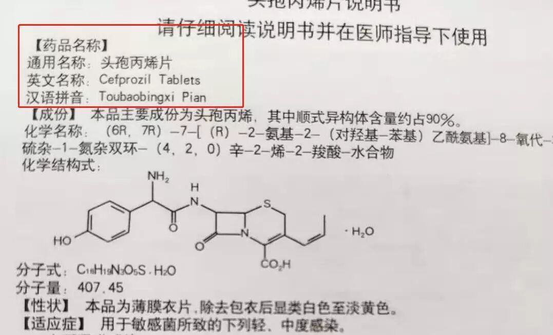药品说明书第一项就是药品名称,包括通用名(中文汉字、拼音、英文)、商品名和化学名,就像人有正式名字、外号、笔名一样。以下面这些药物为例: